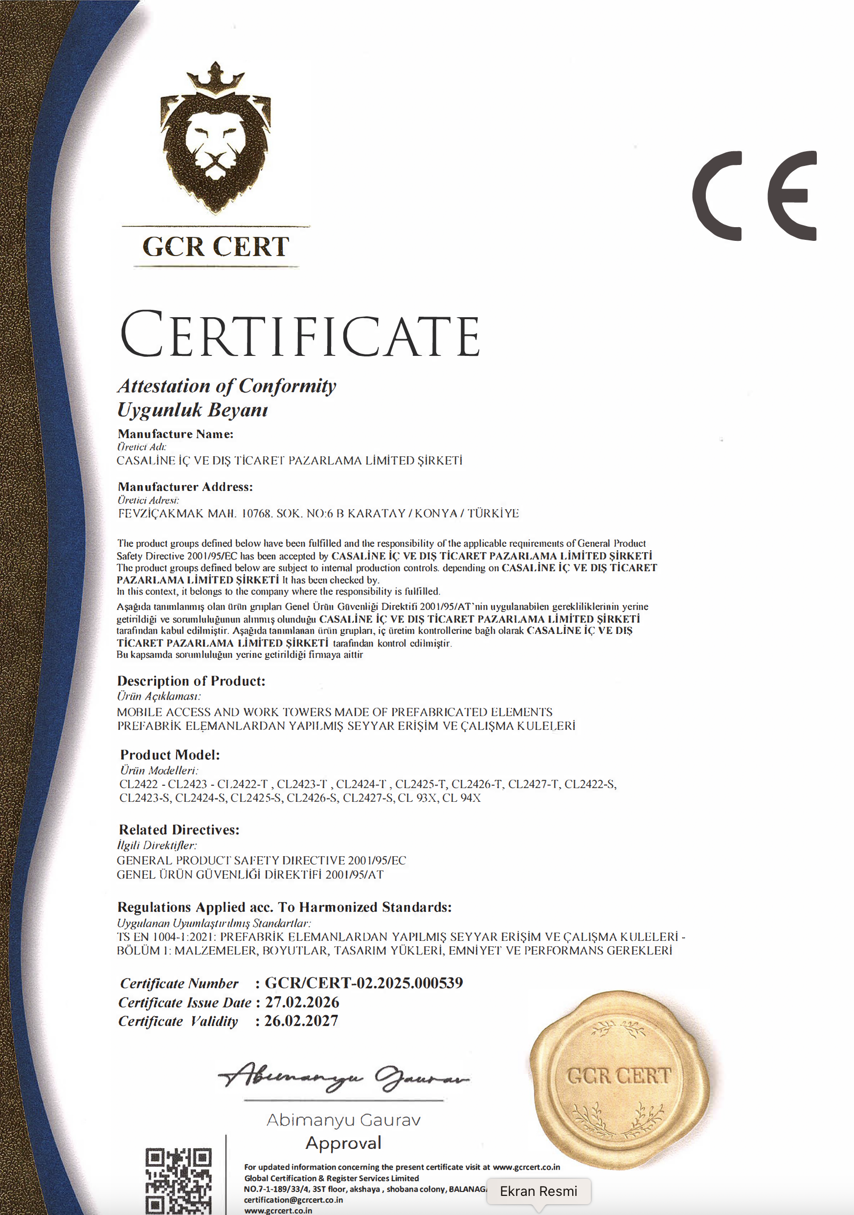 Our factory holds ISO standards, and all our products are manufactured in accordance with European standards EN 131 and EN 1004 for occupational safety.